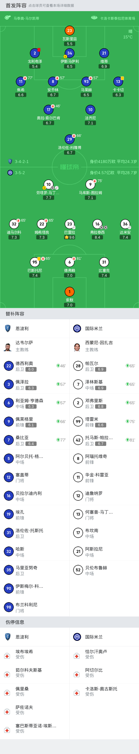 最终,全场比赛结束,国际米兰3-0完胜十人恩波利。