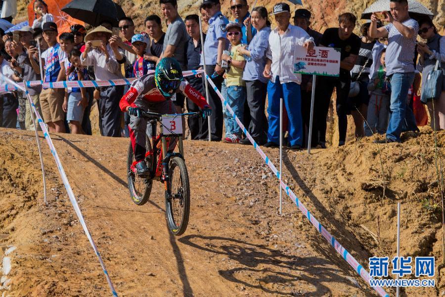 5月13日,选手在比赛中。当日,2017年亚洲山地自行车锦标赛在安徽宣城鸣枪开赛,来自中国、日本、韩国、哈萨克斯坦、伊朗、印度等十余个国家和地区的120名运动员在安徽宣城敬亭山风景区展开山地自行车竞技。新华社发(水从泽摄)