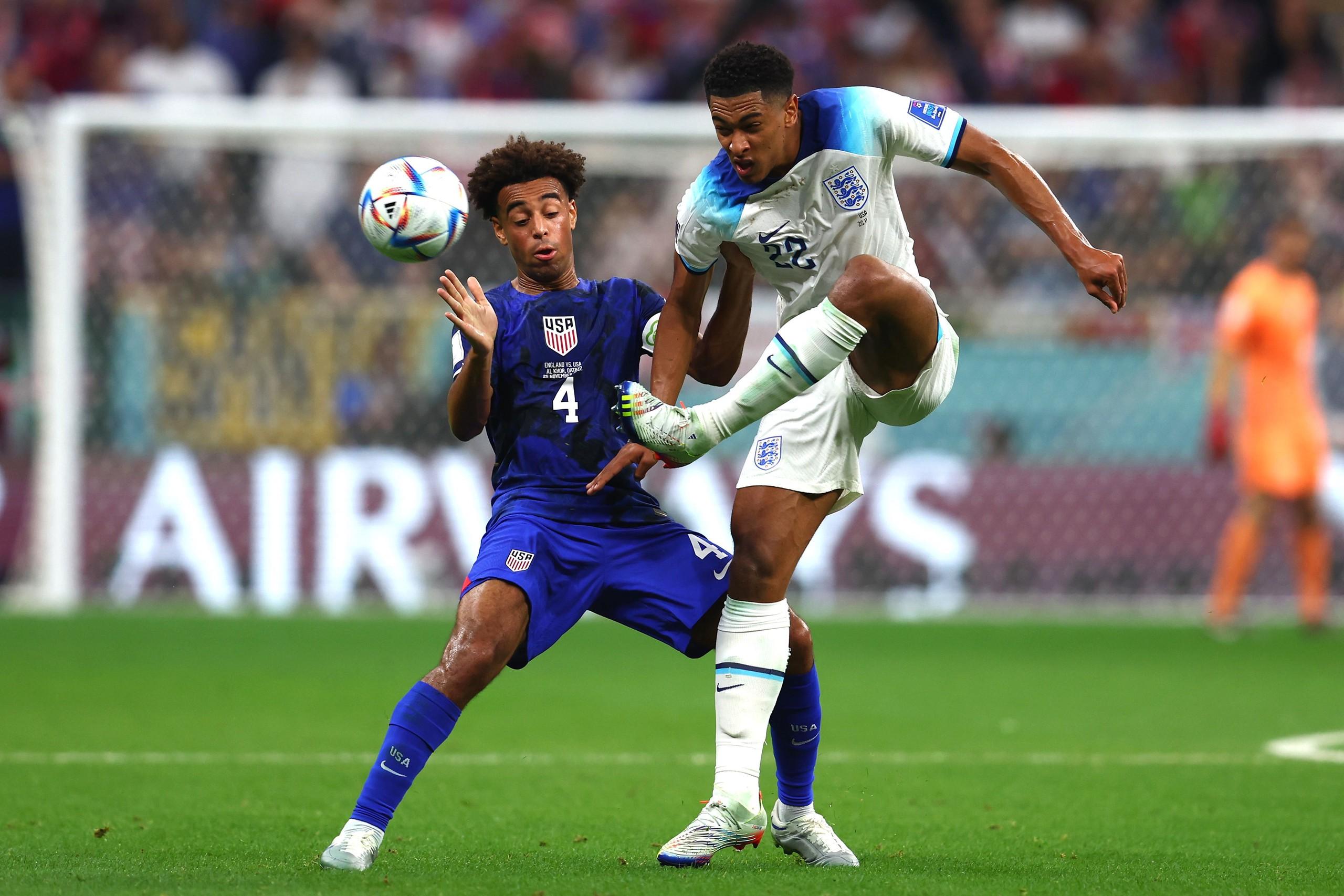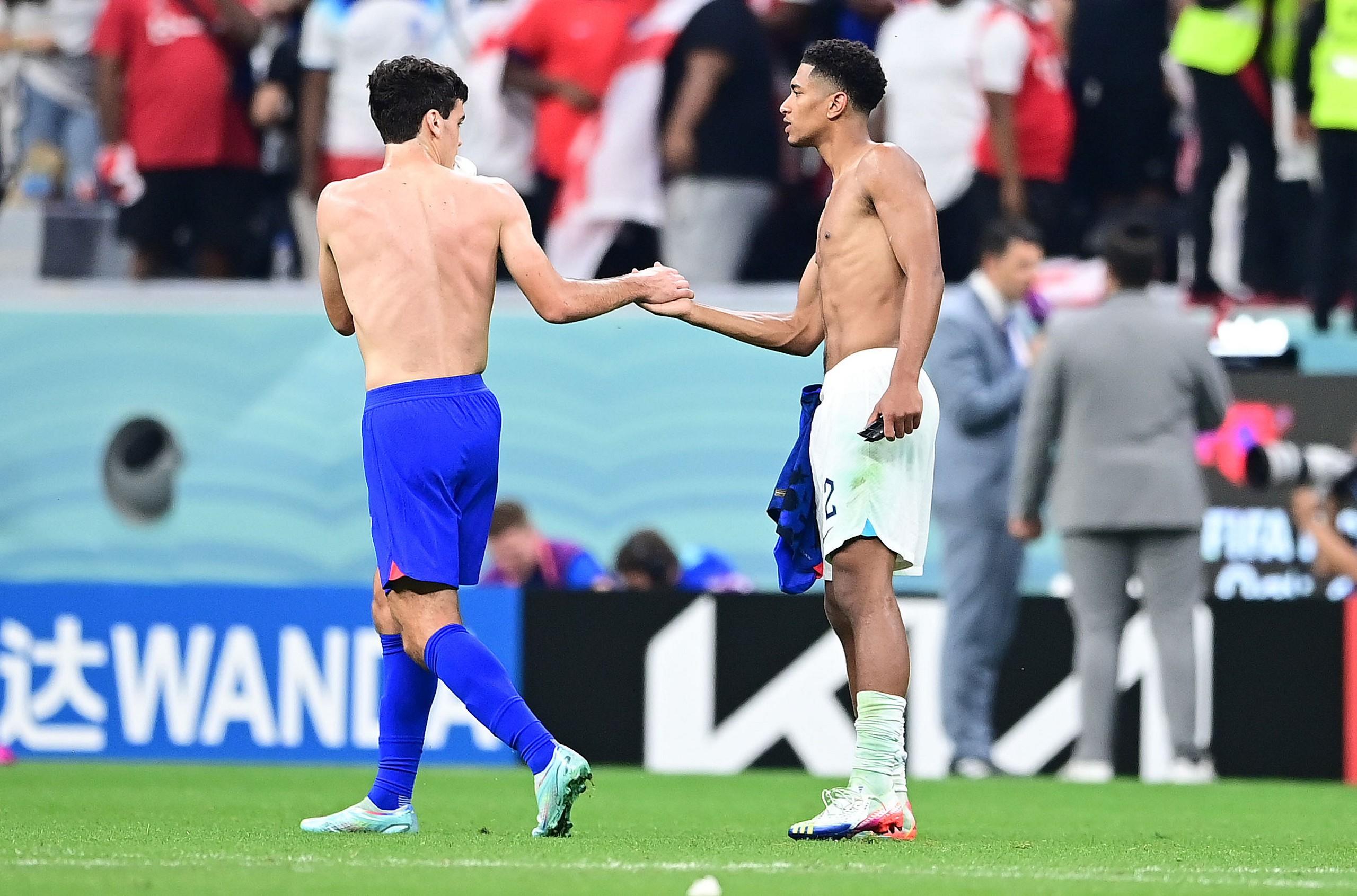 “英美大战”在球迷山呼海啸般的呐喊声中开赛,全场比赛最有质量的一脚射门来自美国队,第33分钟,普利西奇禁区内连续晃动后大力抽射,足球击中横梁弹出。整场比赛,英格兰队8脚射门3脚射正,美国队10次攻门1次射正。直到终场哨声响起,双方未能打破僵局。