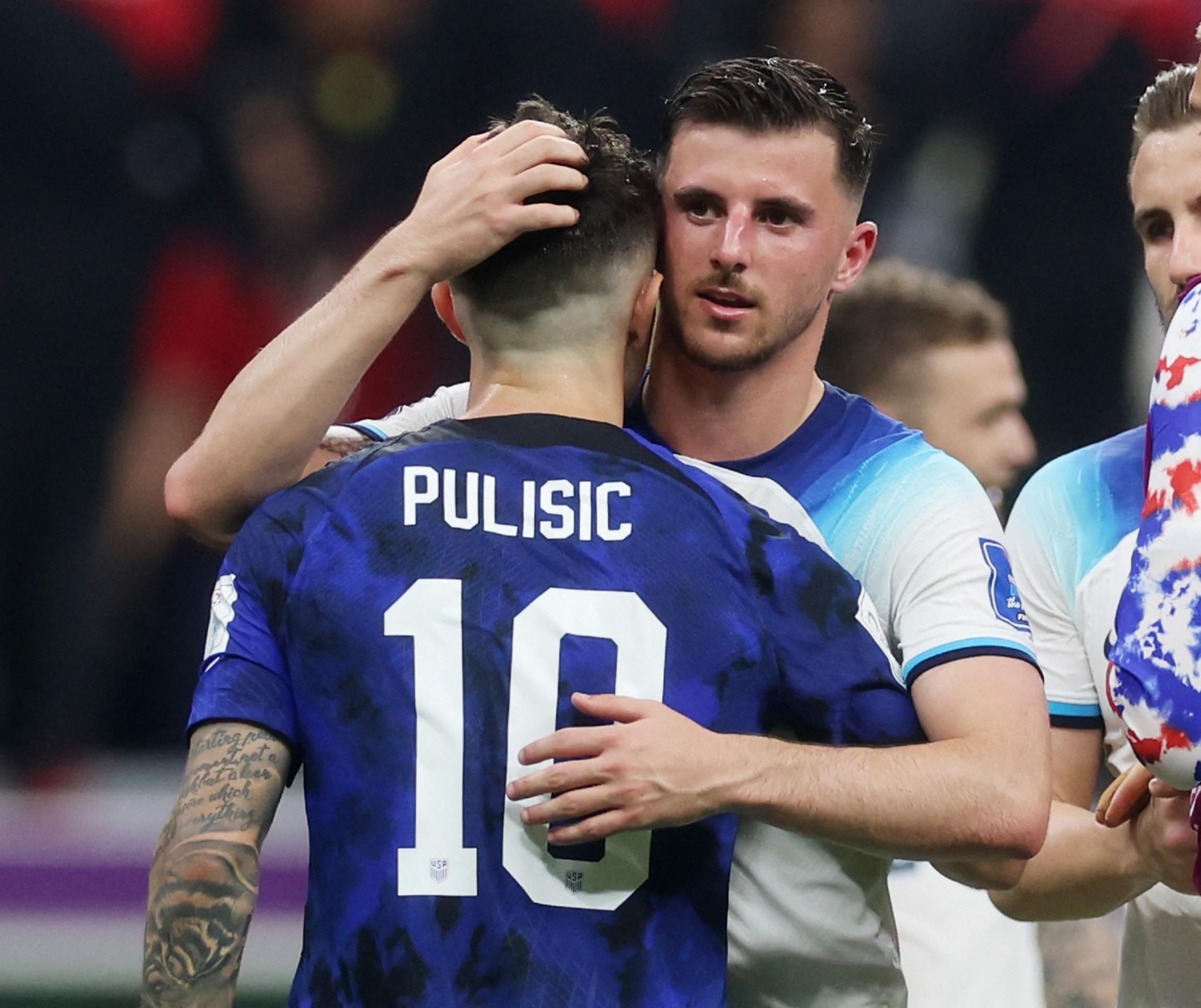 切尔西俱乐部队友普利西奇、芒特(右)赛后拥抱
