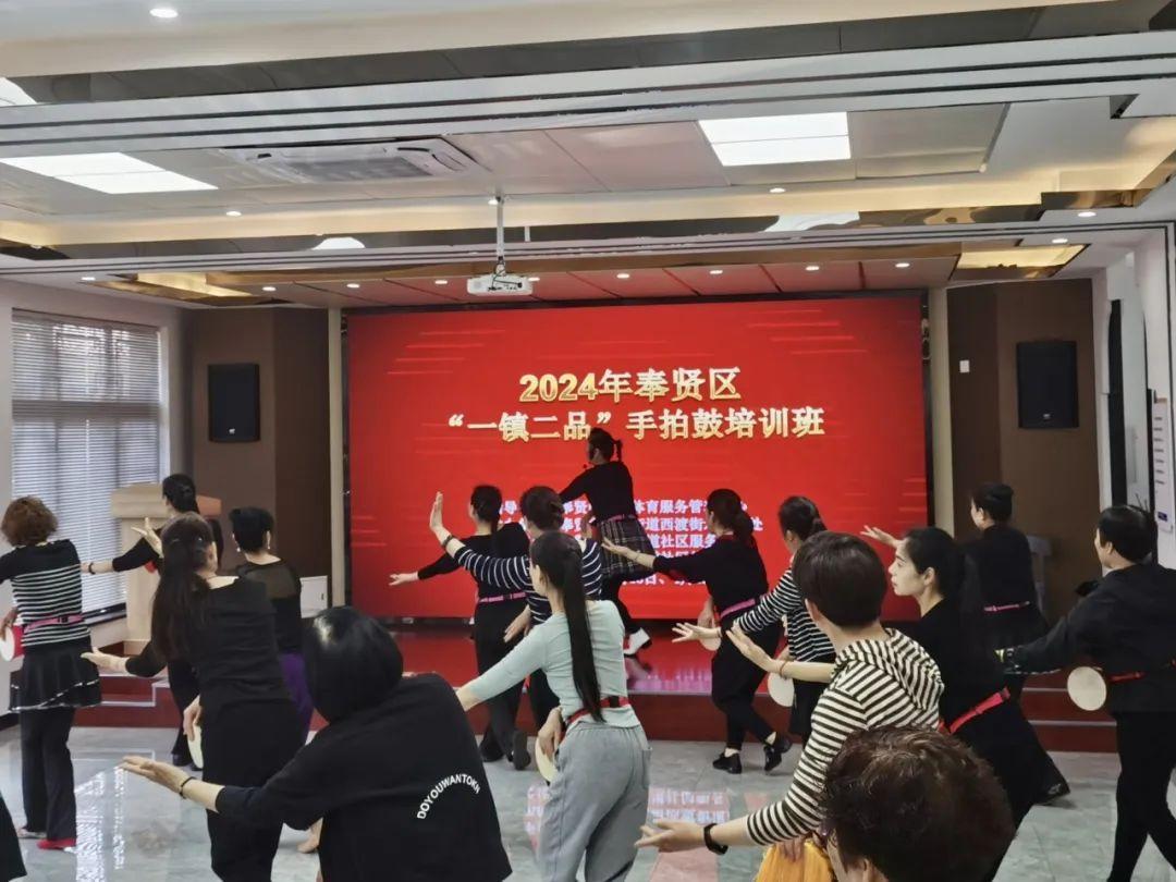 在奉贤区社会体育服务管理中心的大力支持指导下,西渡街道在金港村生活驿站举办2024年“一镇二品”健身特色项目手拍鼓培训班。来自奉贤区12个街镇社区的30位健身团队骨干参加了本次培训。