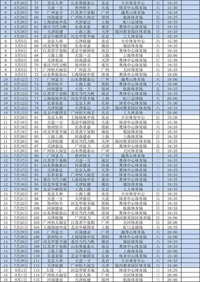 新赛季广州德比将在5月5日(第9轮,恒大主场)和9月30日(第24轮,富力主场)进行,恒大对阵上港的焦点大战将在4月13日(第6轮,上港主场)和9月2日(第21轮,恒大主场)展开较量。