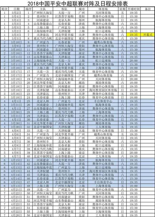 根据赛程安排,新赛季中超联赛将于3月2日拉开战幕,开幕式和揭幕战定于3月3日,天津泰达将在主场对阵河北华夏幸福。