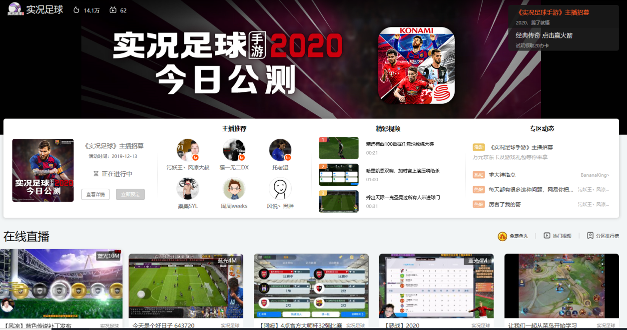 比如说原来在斗鱼搜实况足球,就那么几个大咖的直播间,现在小编尝试去搜了一下实况足球,直接62个正在直播!加上还有不少暂时没开播的,实况区的光是从数量上就要开始崛起了,这放在以前,这个点就只能去看看几位大咖的录播了。