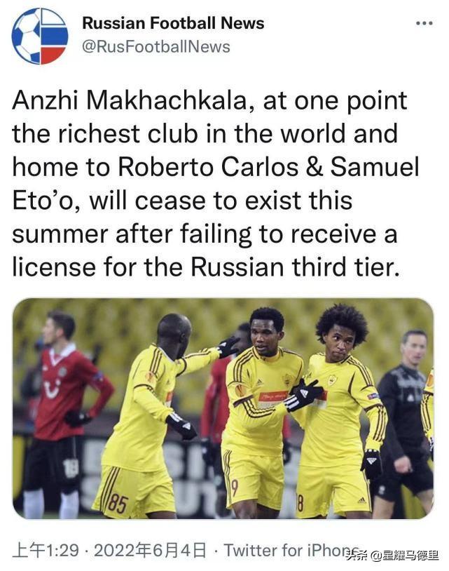 遗憾的是,从2013年开始,克里莫夫便不再为俱乐部大量投入资金。并且将队内的球星全部挂牌抛售,威廉与埃托奥被卖到了切尔西。此后安郅队便不断经历沉浮,从俄超降级,2021-22赛季更是位列俄乙第5名。11年时间,从挥金如土到即将解散,安郅俱乐部的经历正印证了那句话:要想搞好足球,或许钱不是万能的,但没有钱是万万不能的。
