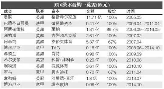 美国资本进入英国始于2005年的曼联,随后陆续辐射到阿森纳、利物浦、阿斯顿维拉、桑德兰、富勒姆等球会,可以说几乎覆盖了英格兰足球最有权势的半壁江山。