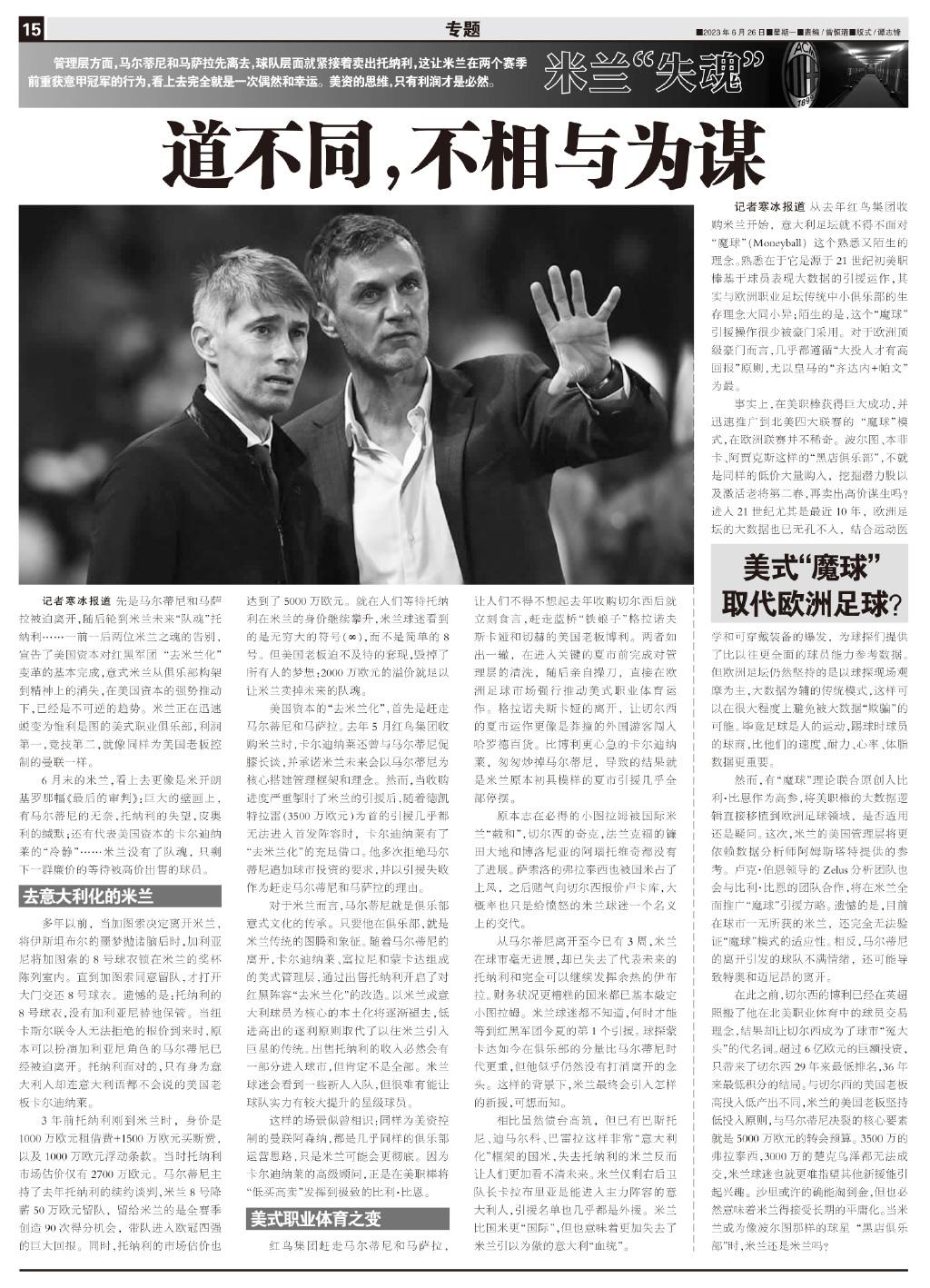 【米兰失魂】管理层方面,马尔蒂尼和马萨拉先离去,球队层面就紧接着卖出托纳利,这让米兰在两个赛季前重获意甲冠军的行为,看上去完全就是一次偶然和幸运。美资的思维,只有利润才是必然。
