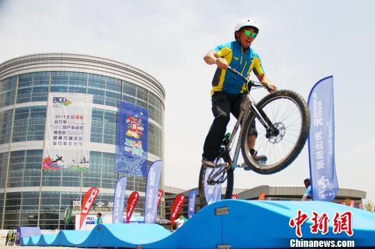 北京市第十一届全民健身体育节暨2017“美利达-正新杯”第七届北京国际自行车骑游大会17日开幕。 李岩 摄