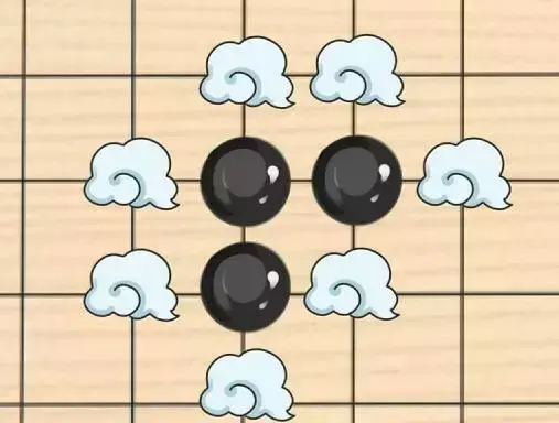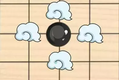 如果这时候,白子再走一步,“赶尽杀绝”,把黑子剩下的最后一口“气”也堵上,那么这颗黑子就被“吃掉”,拿出棋盘了: