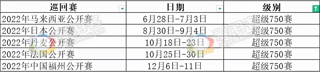 全英赛、印尼公开赛、中国公开赛是super1000级别赛事。