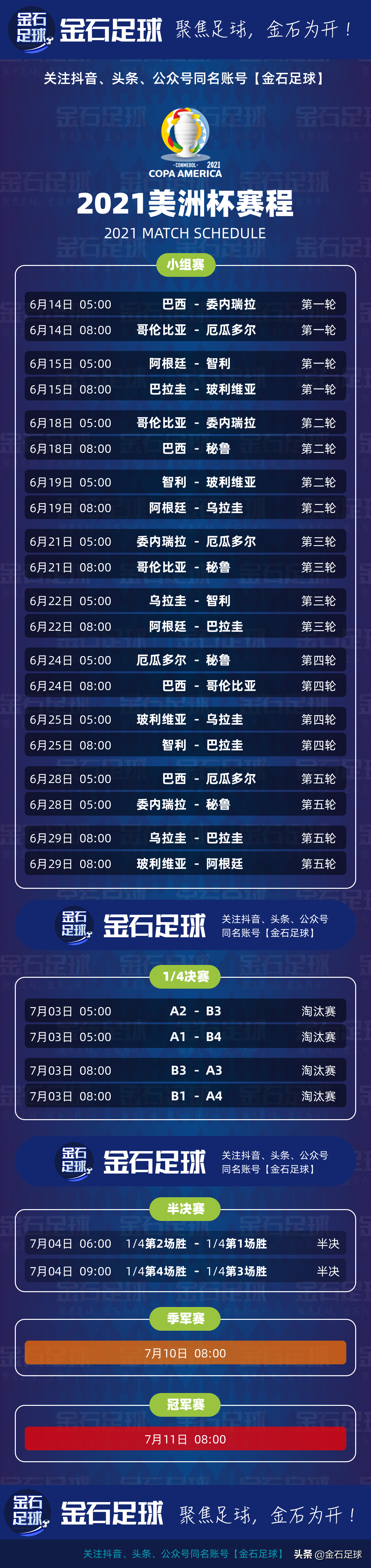 倒计时三天!美洲杯即将开始啦!2021美洲杯(由2020年推迟)举办时间为当地时间2021年6月13日至7月10日,小石为大家整理了北京时间的美洲杯赛程,可收藏保存哟。