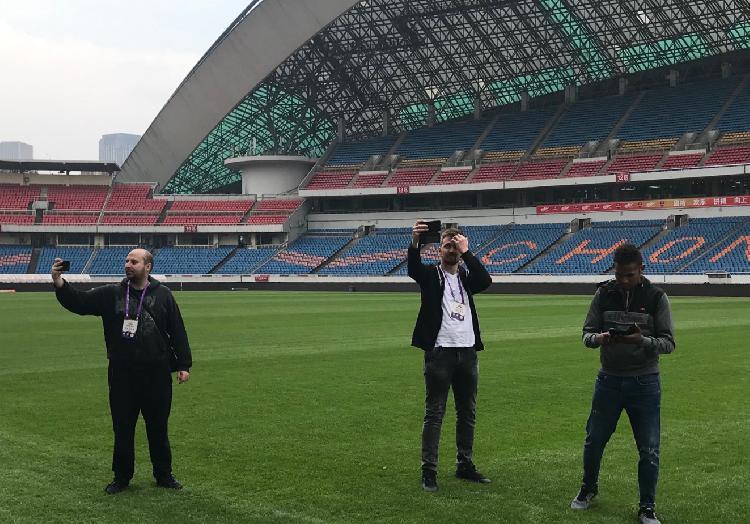 重庆斯威的中超第三轮比赛将在3月31日进行,以往奥体内场进行明星演唱会,舞台的搭建总会或多或少的伤害到草皮影响到中超比赛,记者注意到WESG的主舞台搭建在主席台对面的跑道上,基本没有搭建在草皮上,也就不会对草皮有什么影响,而奥体的内场景色和出色的草皮质量,倒是吸引了不少参赛选手到草坪上自拍。