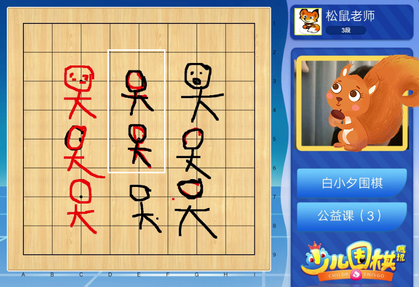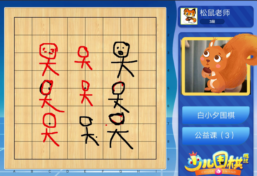 之前,我们开设了一个围棋公益课,就是松鼠老师上课。