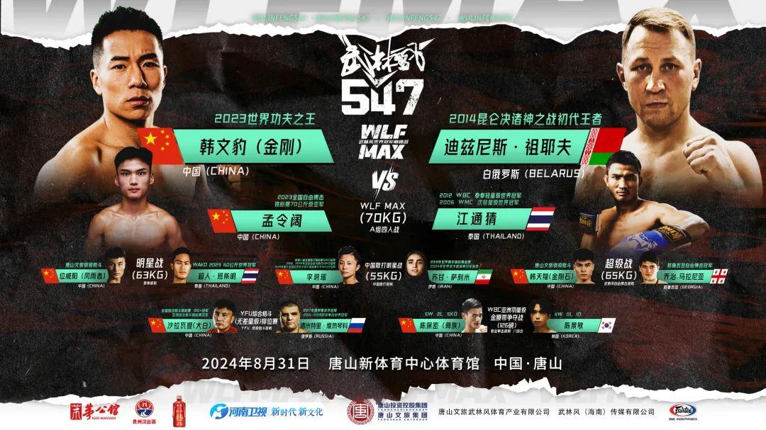 2024年8月31日,茅公馆股份·贵州汉台酒杯特约播出的武林风世界冠军巅峰战暨武林风547高端数字赛,将于河北唐山新体育中心体育馆再度开战,来自多个国家和地区的14位选手,将在擂台上进行激烈的角逐。