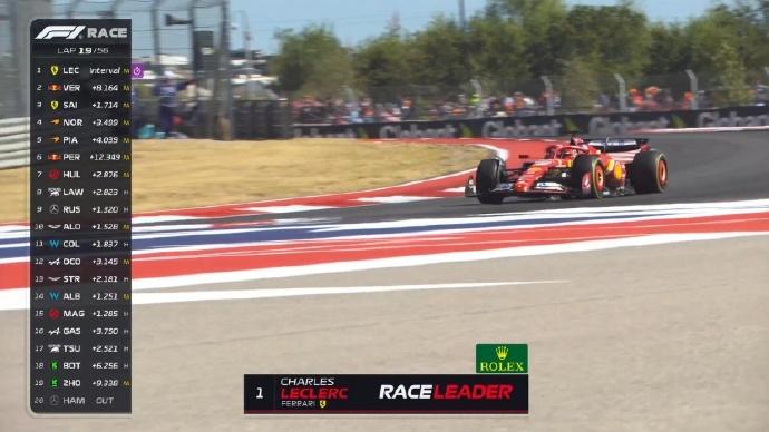 第19圈,勒克莱尔的领先优势已经来到8秒以上↓