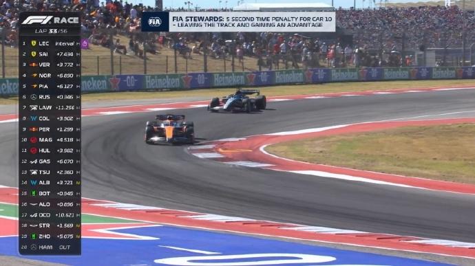 第33圈,加斯利由于离开赛道获利,被罚时5秒