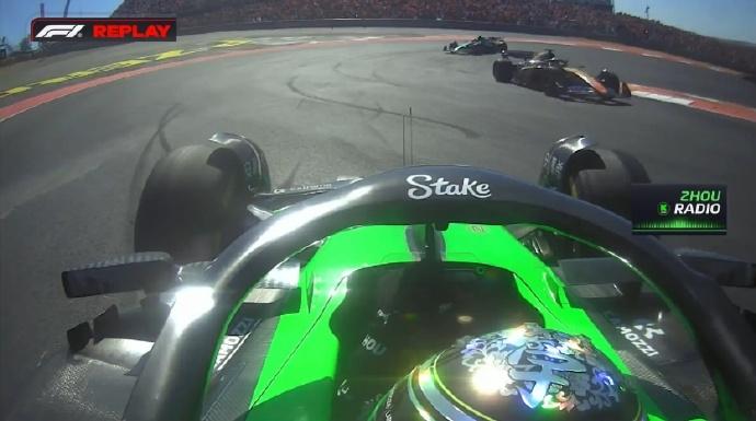 周冠宇出现失误打滑,从第13掉到了队尾↓
