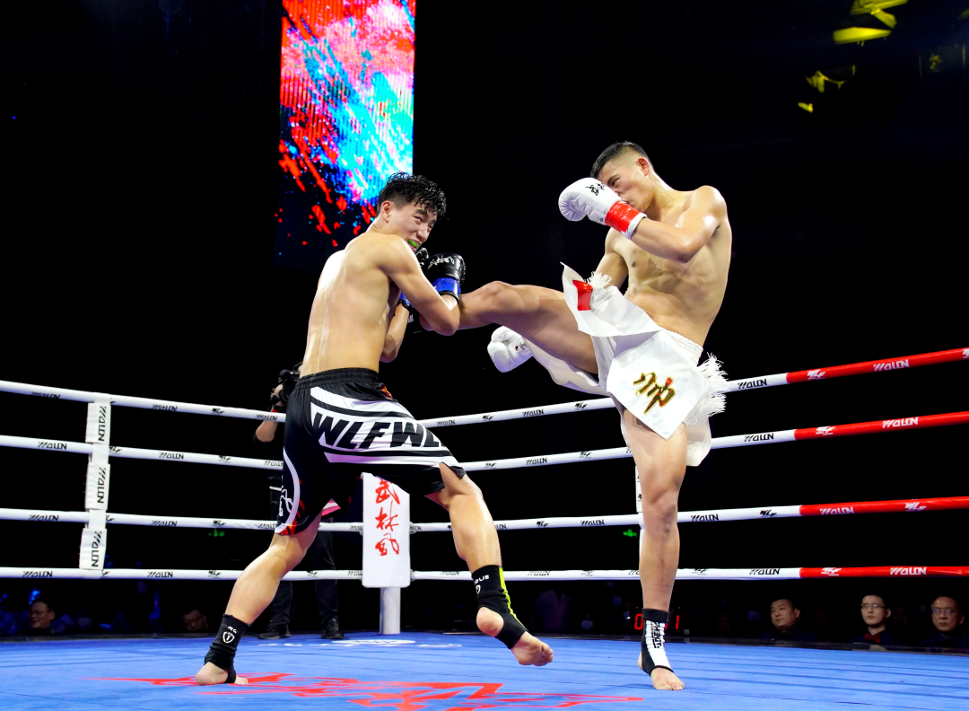 王鹏飞是武林风史上第二个双冠王,拥有WLF65KG世界金腰带、2021WLF世界功夫之王,面对后起之秀周家强,很快陷入阵地战,高速对攻未能打崩周家强,进入第三局王鹏飞加大进攻强度,终于给予对手重击读秒,尽管周家强极力挽回,但未能挡住王鹏飞,从而与贾奥奇会师决赛。