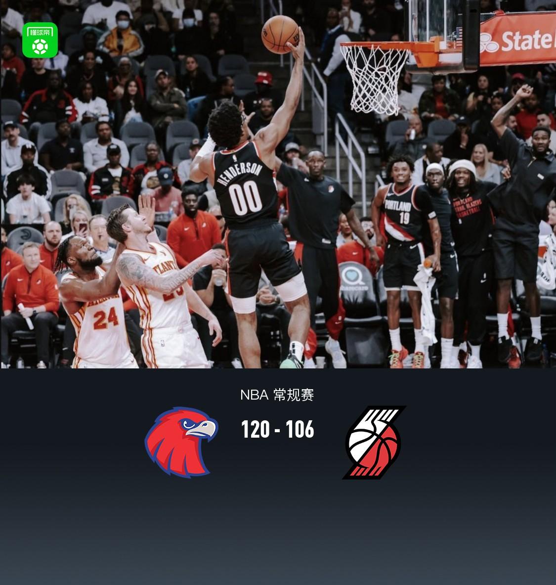 北京时间3月28日NBA 常规赛,亚特兰大老鹰对阵波特兰开拓者。半场老鹰65-58开拓者,最终老鹰120-106开拓者。
