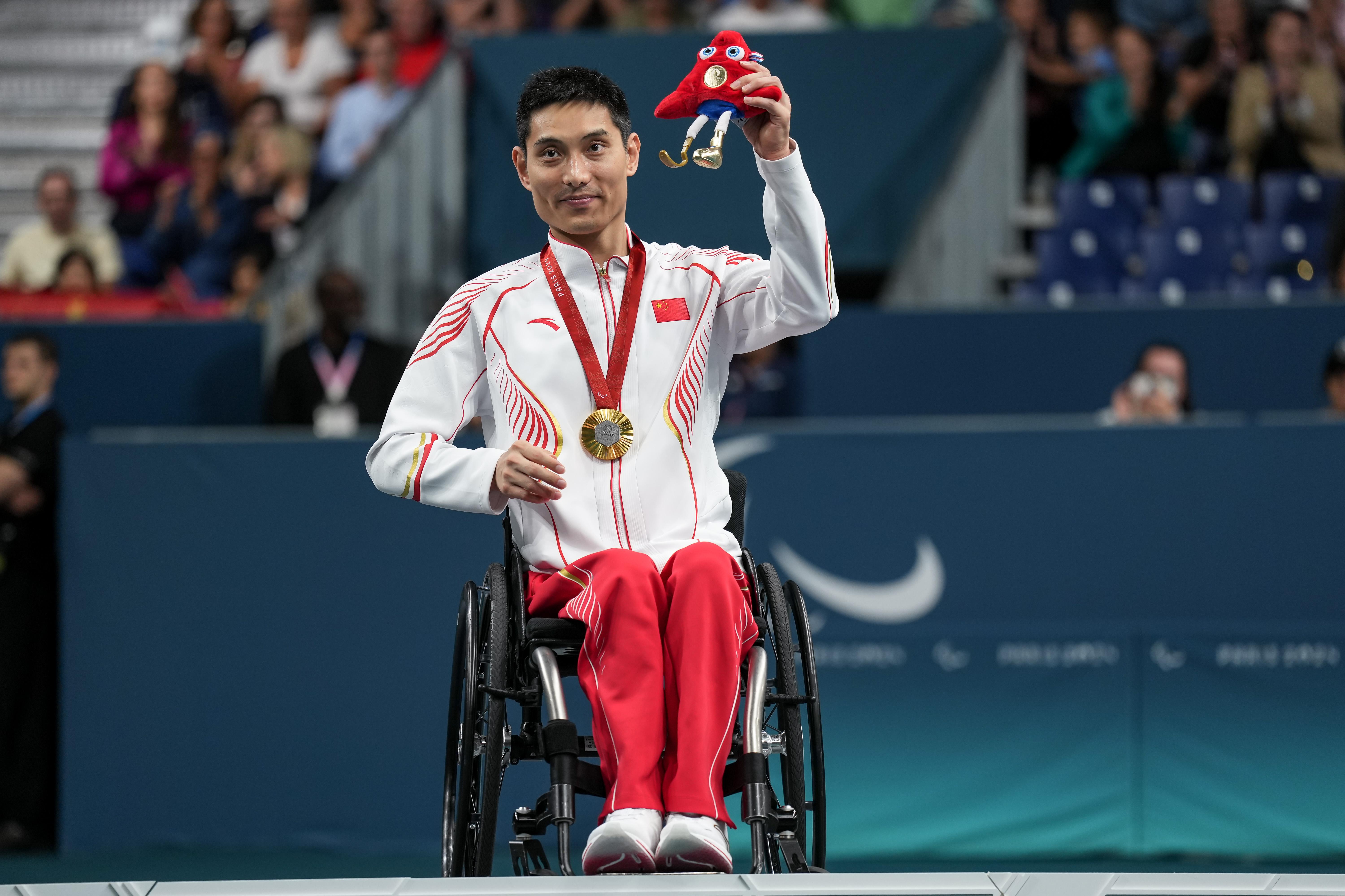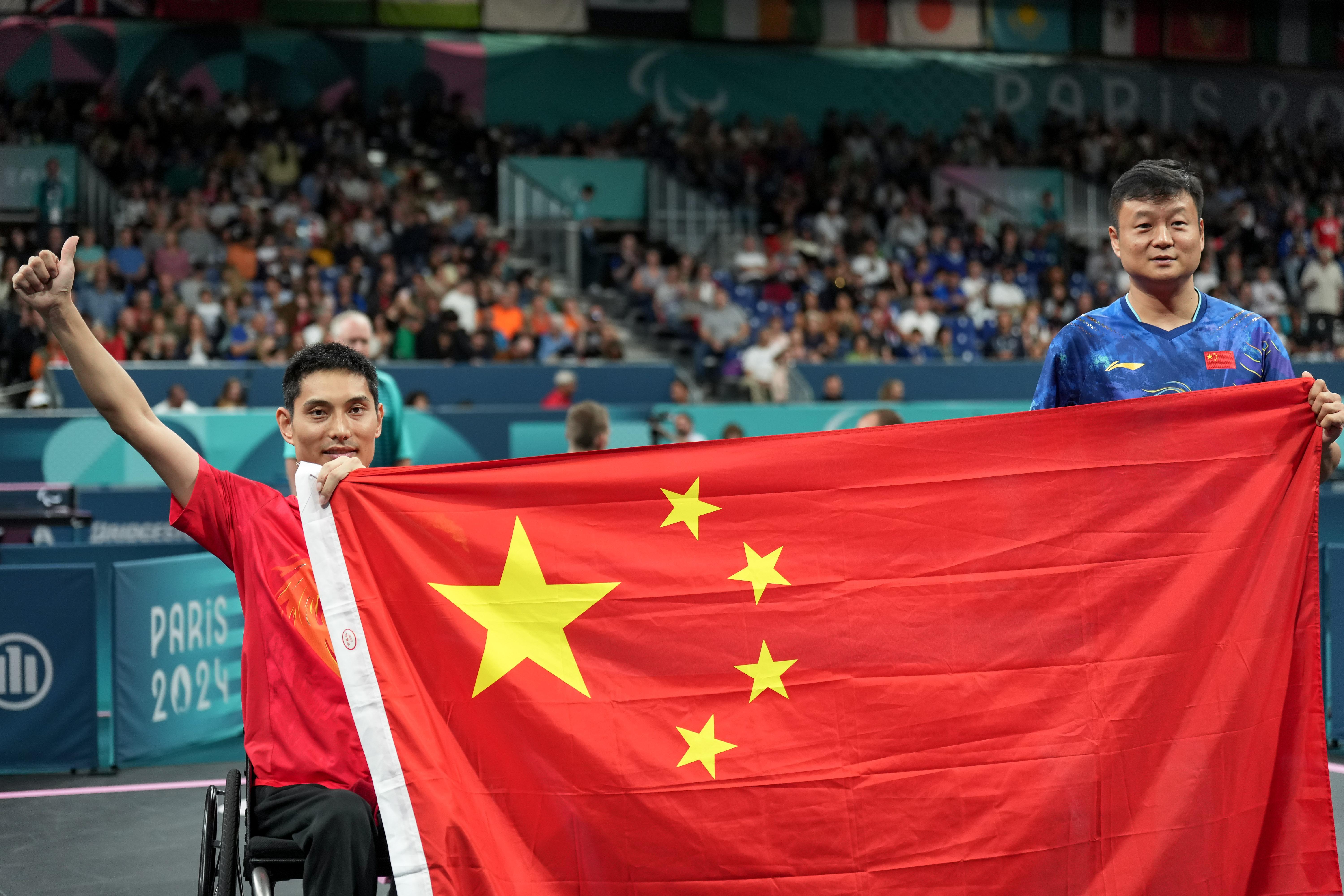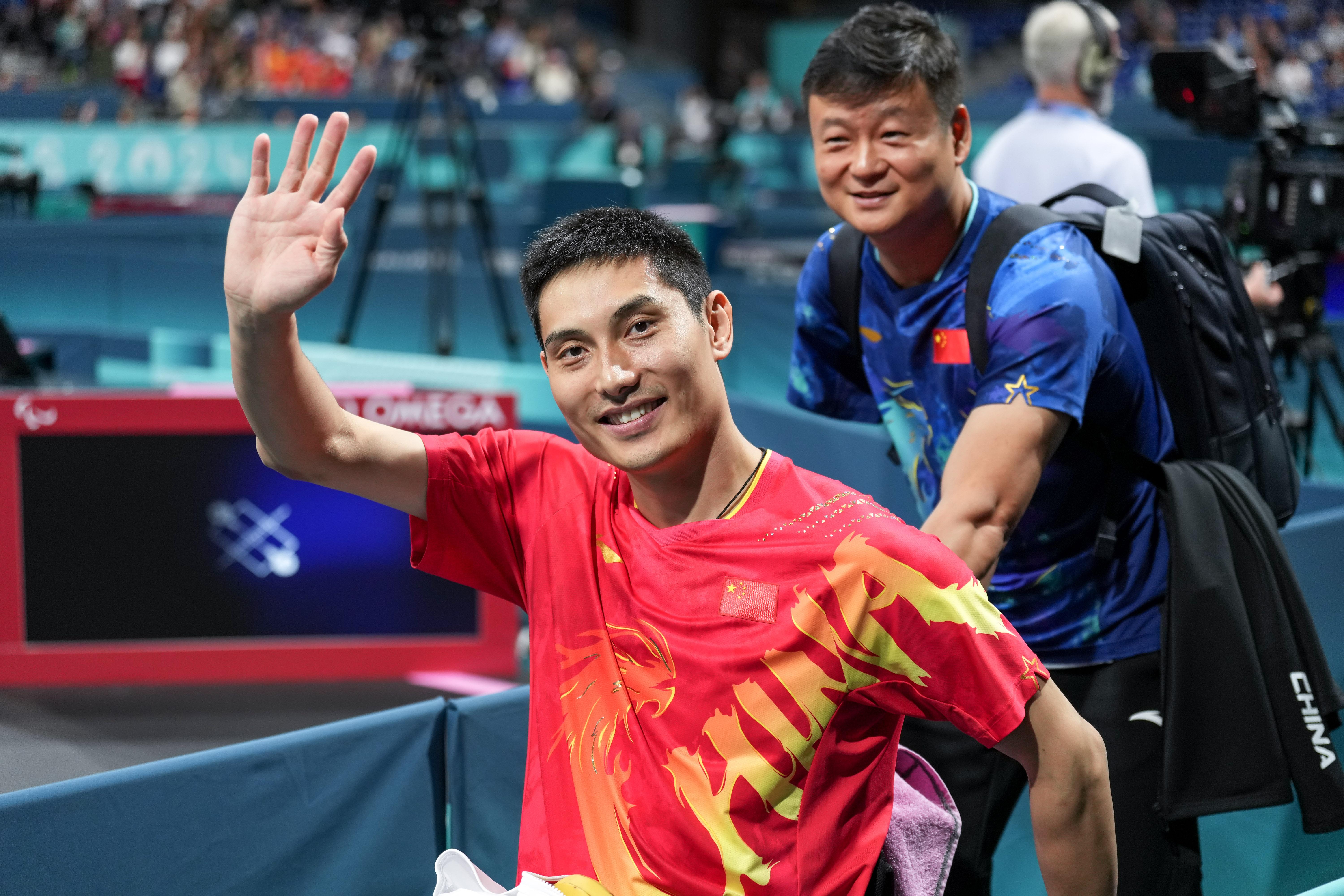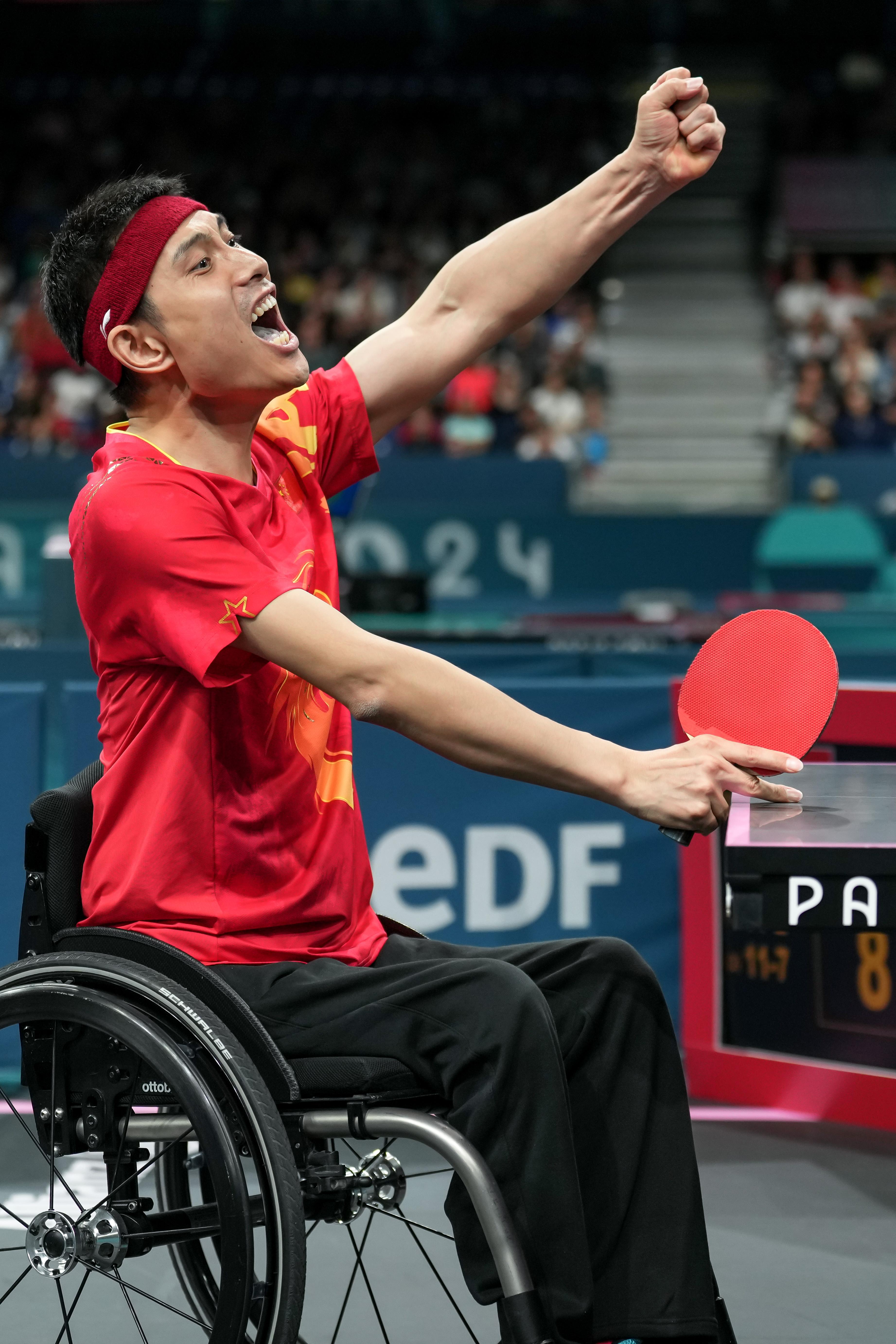 当日,在巴黎残奥会乒乓球男单3级决赛中,中国选手冯攀峰3比0战胜德国选手施米德贝格尔,获得冠军。