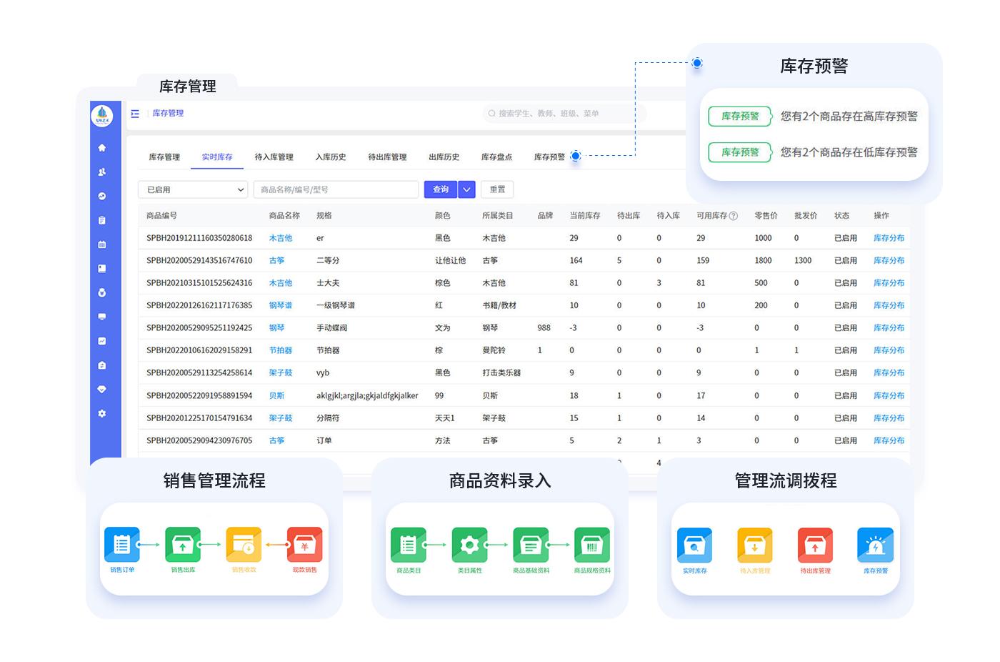 商品入库、出库、调拨、盘点等等全套进销存管理我们校宇宙羽毛球馆管理系统都有。