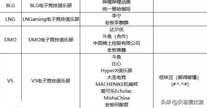 最后成绩倒数的战队中,比较惨的应该就是LNG了,除了老板的企业似乎没了,而倒数第一的V5战队反而发展的还不错,有7个赞助商,不知道是不是和他们的老板有关,另外还有怪味豆最佳大使的身份,确实没想到的。