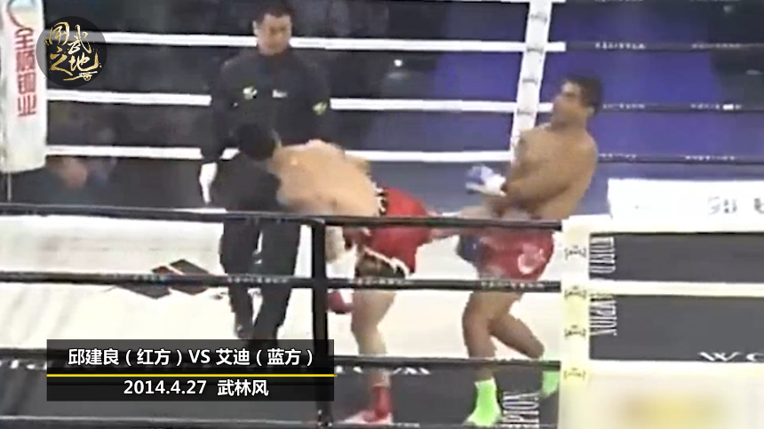 这场比赛发生于2014年4月27日,邱建良在武林风第六场比赛中,对决来自马来西亚的拳手艾迪。彼时,邱建良刚刚因为在武林风KO了泰拳高手赛格东一战成名,因此武林风也为其安排了这场武林风洲际金腰带争夺赛,本场比赛是首轮对决。