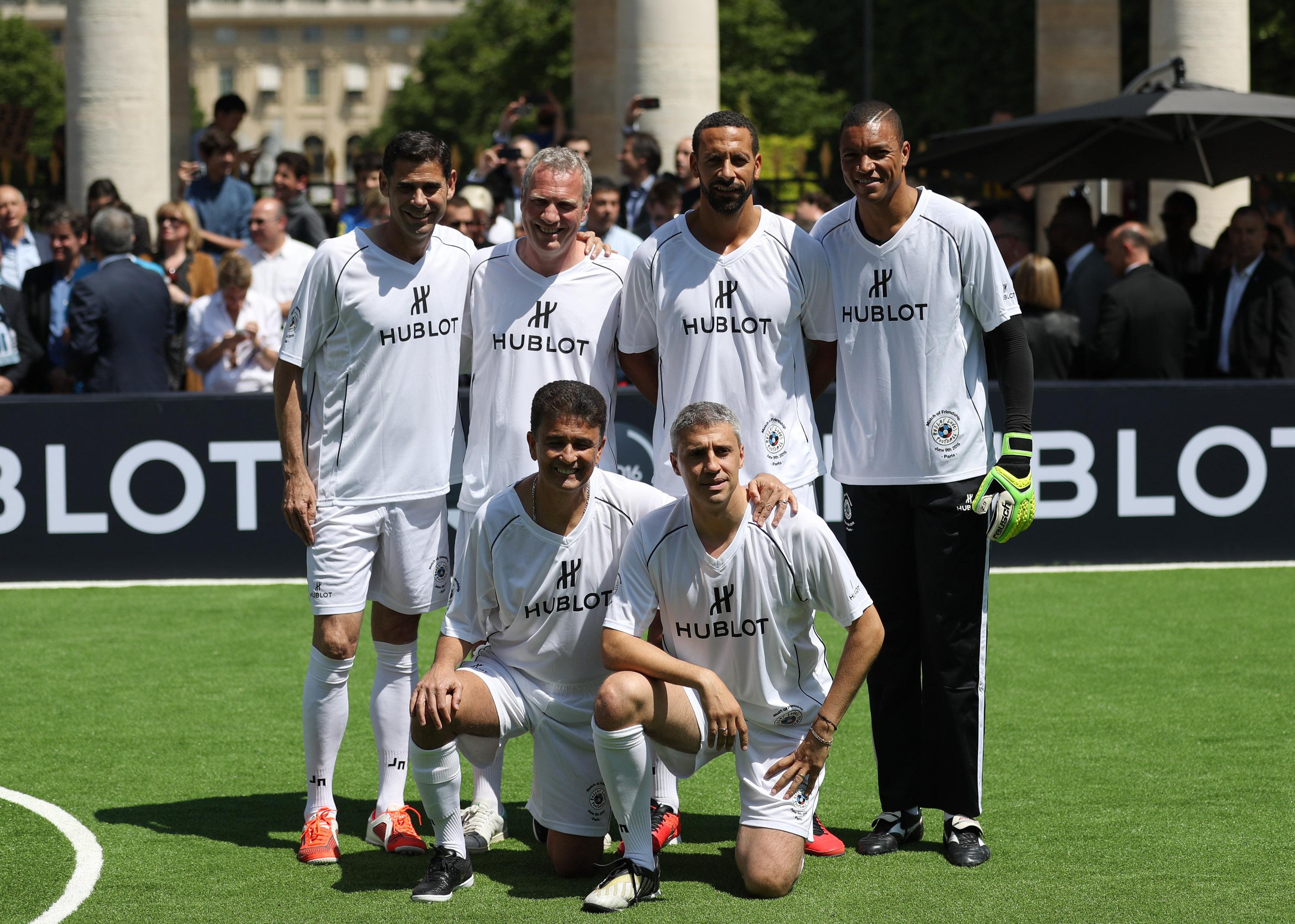6月9日,(后排左起)耶罗、费尔南多、费迪南德、迪达和贝贝托(前左)、克雷斯波在赛前合影。新华社记者白雪飞摄