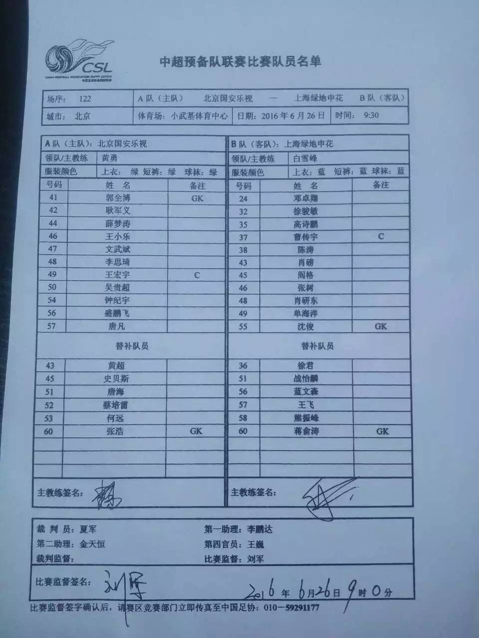 北京时间2016年6月26日上午9:30,中超联赛预备队第14轮的一场比赛,北京国安乐视队在小武基体育中心对阵上海绿地申花队。最终凭借前锋唐凡的头槌破门,北京国安乐视预备队1-0战胜对手!在一线队和预备队的两场比赛中完成了对绿地申花的双杀!