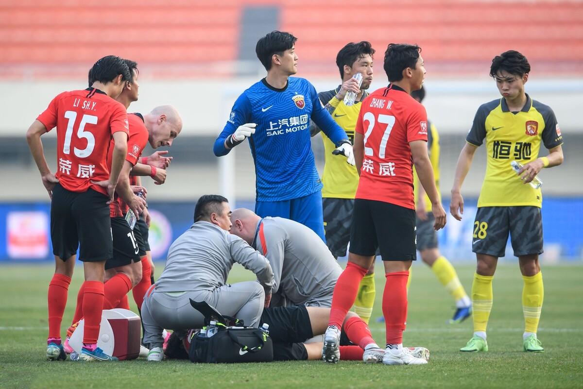 第67分钟,刘祝润被钟义浩撞倒,在经过队医检查后直接被抬上了救护车。