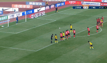 第81分钟,廖力生主罚前场左侧任意球,海港球员禁区内头球解围。