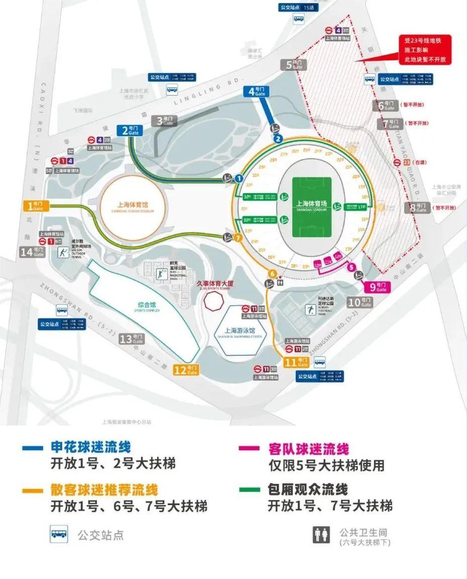同时,场馆周边临近漕溪路公交枢纽站市民可选择15路、111路、122路、178路大站车、315路、326路、44路、56路、733路、808路、824路、92路B、92路、932路、957路、958路、大桥六线、大桥六线区间、隧道二线、徐川专线等多条公交线路前往。
