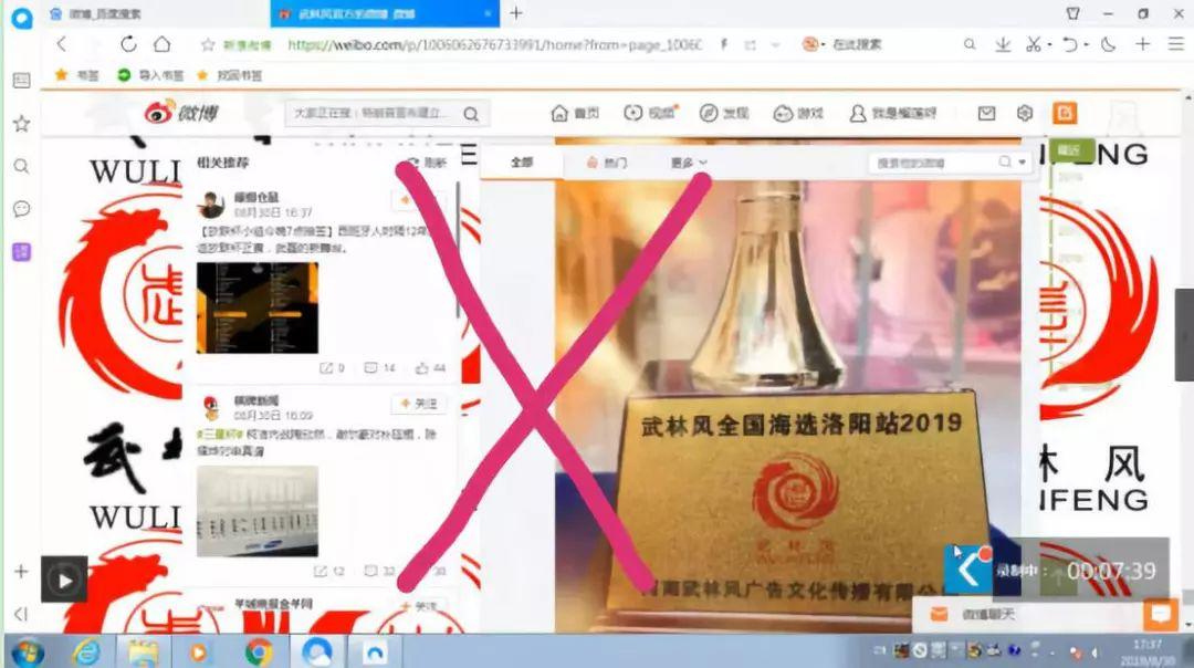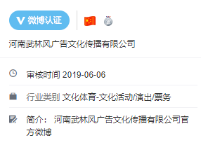但是,经查,该公司却在其微博账号“武林风官方”中,公示行业类别为“文化体育-文化活动/演出/票务”,其并在该账号中转发河南卫视“武林风”微博账号中的信息以及其他武术活动信息,其中甚至包括所谓的“武林风全国海选洛阳站2019”活动的相关宣传。