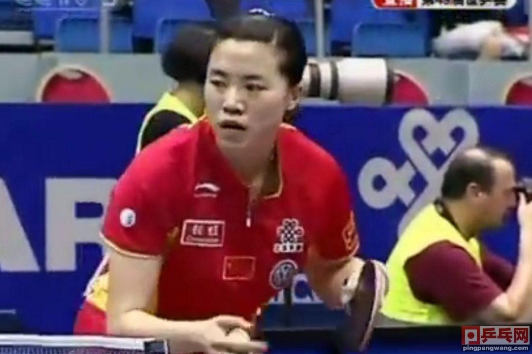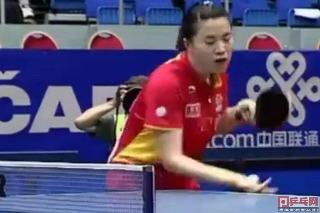 王楠发短球,张瑞摆短,王楠正手抢冲,张瑞防回,王楠再拉打网出界,11平。