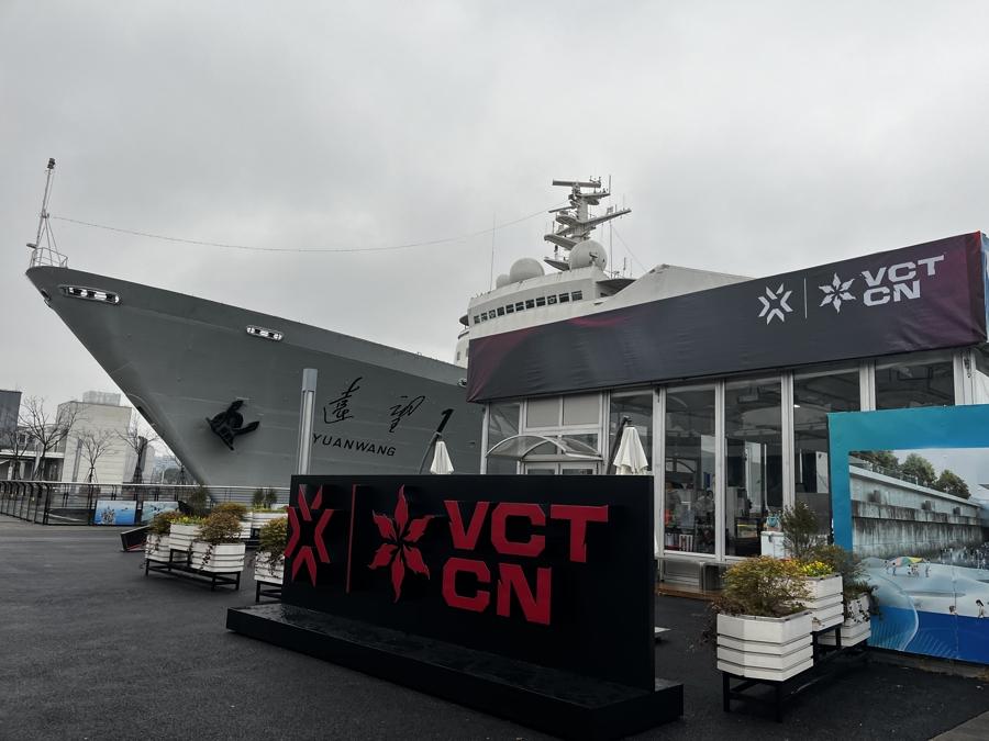 这是“无畏竞技场”的首秀。这个最多可容纳400位观众的电竞场馆,是为此次无畏契约冠军巡回赛CN联赛专门搭建的。紧邻竞技场,停泊着“远望1号”航天测量船,这艘“功勋船”自退役后便停靠于2号船坞。