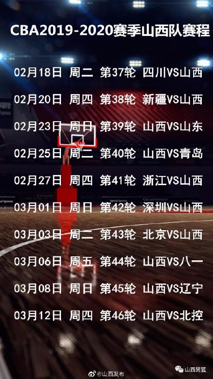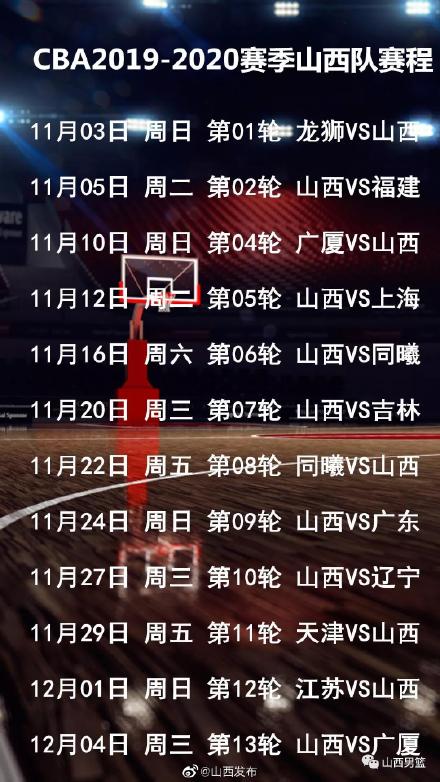 【11月3日开战!山西男篮新赛季赛程发布】CBA公司公布了2019-2020赛季山西队赛程,共分为四组,将在11月3日拉开战幕。具体分组如下另外 球迷们的喜讯!山西男篮10月13-15号在沁源县将和美国、卡塔尔国家队进行对抗赛,山西女篮11月8-10号在长治进行WCBA季前赛!想去观赛的可以计划行程了!