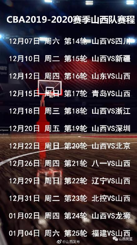 在第一阶段比赛中,山西男篮将坐镇晋城市工人文化宫,迎接浙江广厦队、北控队和吉林队的挑战。第二阶段比赛,山西男篮将与新疆队、深圳队和宁波队,奔赴青海体育中心体育馆展开争夺。