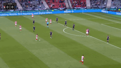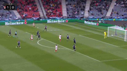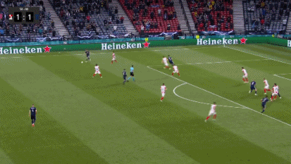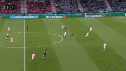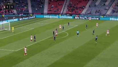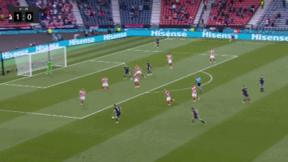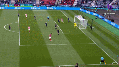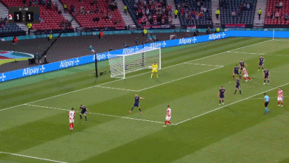 伤停补时4分钟,第90+2分钟,苏格兰左路传中,麦肯纳头球攻门顶偏了一些。全场比赛结束,最终克罗地亚3-1击败苏格兰,拿到出线资格,接下来的对手将是E组的第二名。
