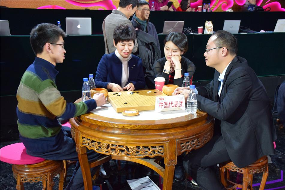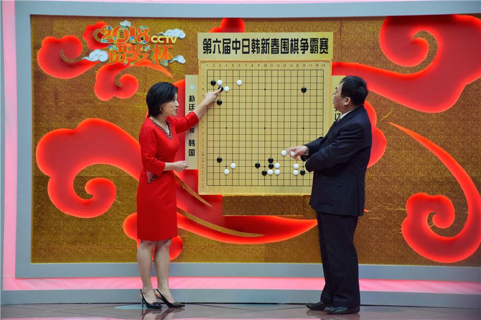 2月5日,2018年CCTV贺岁杯中日韩围棋赛战火打响,朴廷桓对决一力辽。聂卫平徐莹大盘讲解。(摄影:戴一鸣)