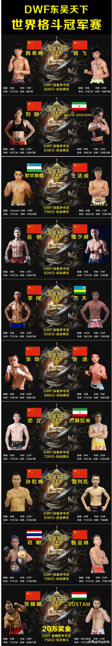 同时本次比赛还有来自深圳盛力人和俱乐部的“巫师”杨巫林,西安龚艳丽搏击俱乐部的岳恒,来自山东的菏泽的李闯等众多拳坛新锐都将参加本次比赛,众星闪耀,大战一触即发,强强对决必然精彩纷呈!10.25晚7.30分格斗世界全程直播,敬请关注。