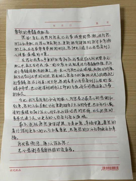 这是造血干细胞受捐者写的感谢信。(景德镇陶瓷大学提供)