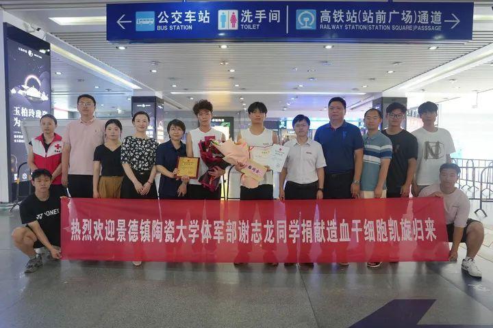 6月14日,景德镇陶瓷大学专门组织师生在火车站迎接谢志龙(左八)。