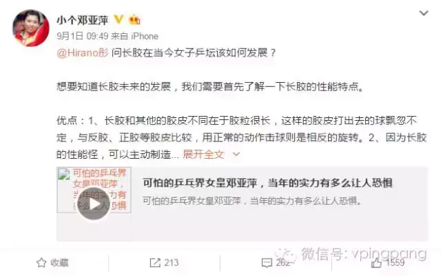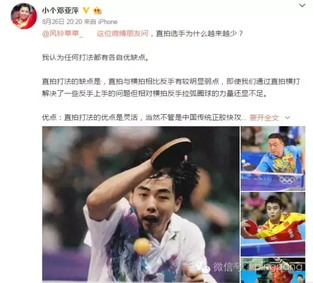 被誉为“乒乓皇后”的邓亚萍,自2016年8月份里约奥运期间开通微博以来,一直都很关注国乒的动向,同时与网友的互动也非常积极,还专门抽出时间回答球友们的各种问题。