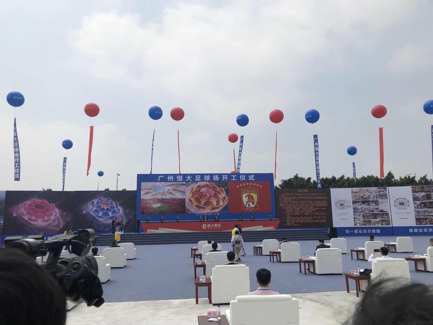 4月16日,广州恒大足球场正式开工,广州市市长温国辉、副市长林道平,恒大集团董事局主席许家印、总裁夏海钧,以及广州恒大俱乐部教练员与球员出席开工仪式。