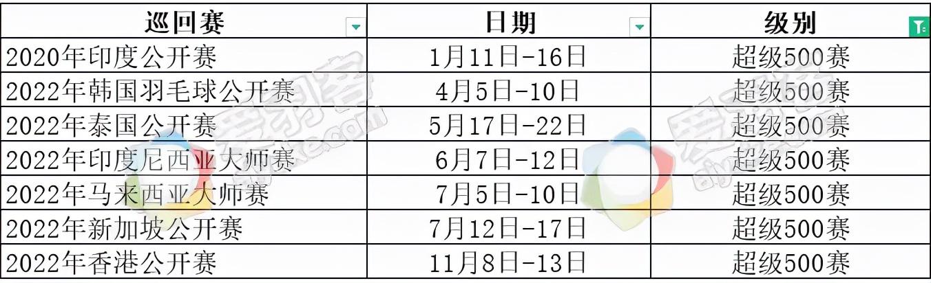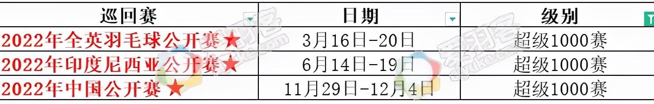 全英赛、印尼公开赛、中国公开赛是super1000级别赛事。