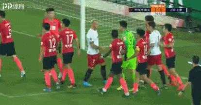 第18分钟,石柯从侧后方放倒塔利斯卡,而且此球已经出界,主裁向石柯出示黄牌,随后双方球员发生冲突,张修维着急推开了胡尔克,塔利斯卡操刀主罚自己博来的任意球,但皮球被颜骏凌出击没收。
