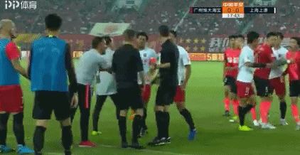 第35分钟,卡瓦略在防守阿兰时吃到黄牌,上港助教谢晖对主裁判不满,被驱逐出场。第39分钟,廖力生飞铲奥斯卡,被主裁判出示第二张黄牌罚出场,恒大被迫10人应战。