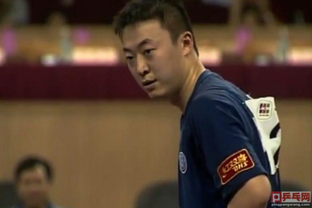 王皓发斜线球,马琳等了一下,让球出台了,侧身正手轻拉小高吊,王皓再拉下网,9-6。