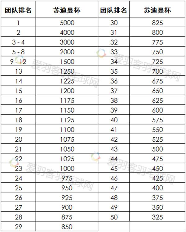 8.2 根据近期举办的汤尤杯或苏迪曼杯的排名,成员协会也会获得团体世界排名积分。