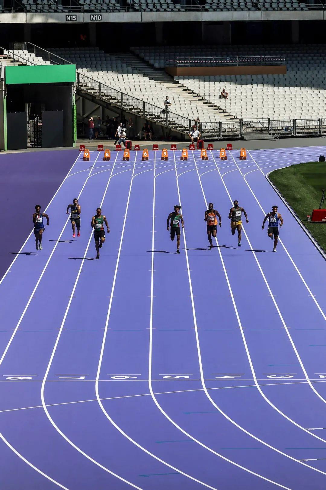 这就是因紫色跑道 而火出圈儿的奥运会田径和七人制橄榄球比赛地,跑道浓郁的紫色正和当地应季盛开的普罗旺斯薰衣草交相辉映。这是在本届奥运会赛程中率先亮相的三个比赛场馆之一(另两个为王子公园球场和若弗鲁瓦·吉夏尔体育场),因为当地时间7月24日15时,巴黎奥运会的七人制橄榄球赛已经首先在此开赛。